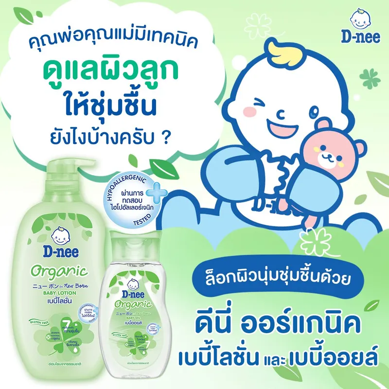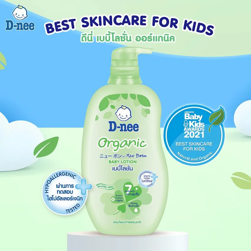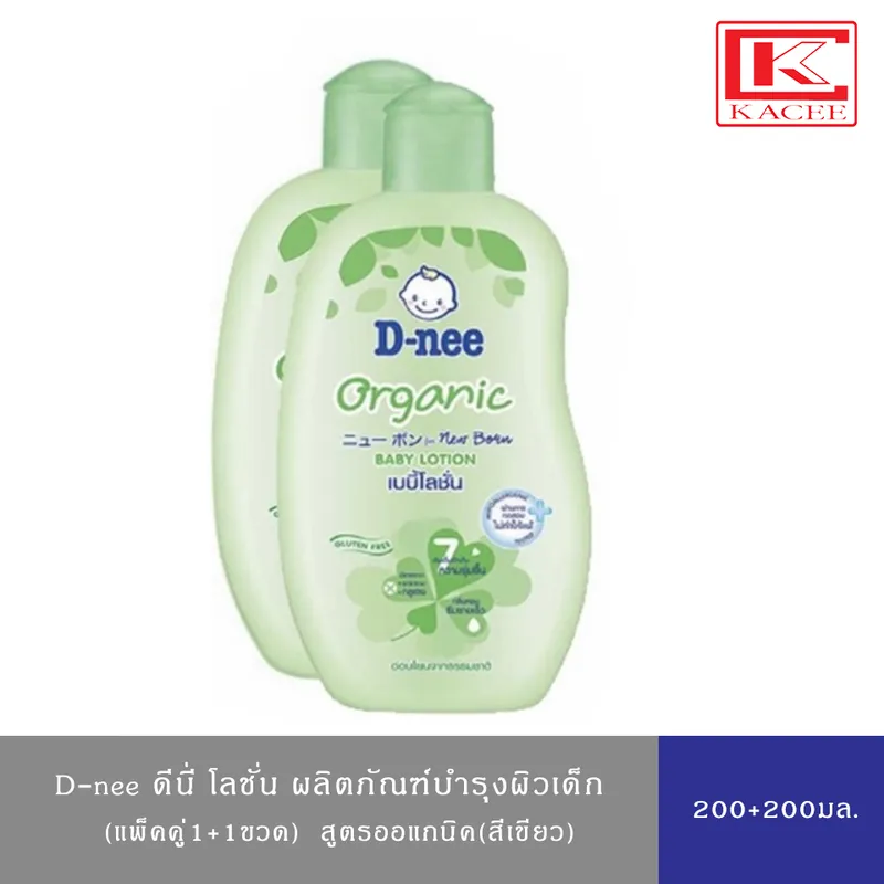 (แพ็คคู่1+1ขวด)D-nee Body Lotion ดีนี่ โลชั่น สูตรออร์แกนิค(สีเขียว),สูตรซากุระ(ชมพู) 200 มล. รายละเอียดสินค้า D-nee Pure Baby Lotion Organic 200 ml ดีนี่ เพียว เบบี้โลชั่น ออร์แกนิค 200 มล.