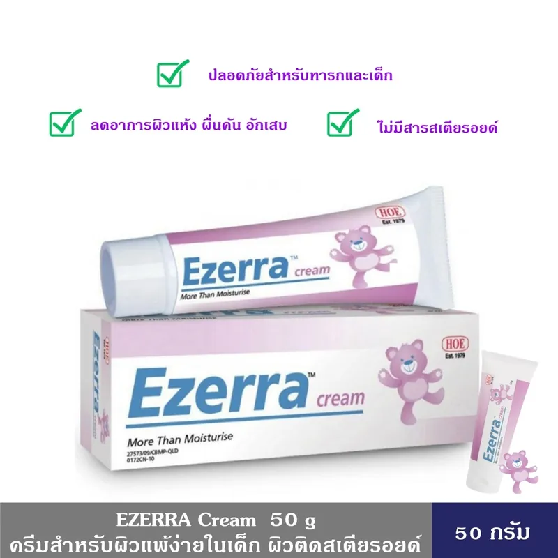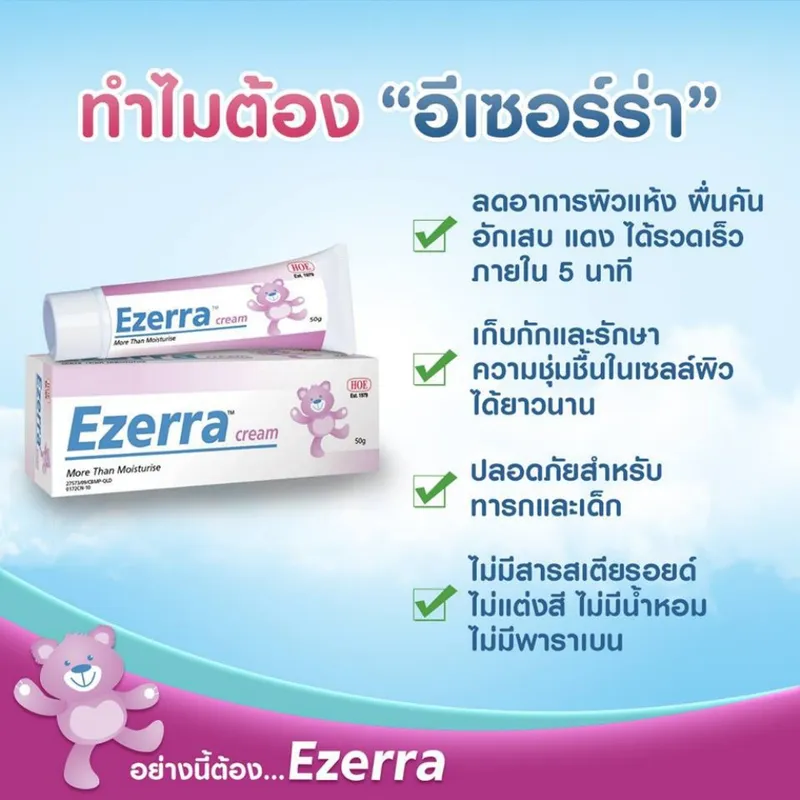 Ezerra Cream 50g ครีมสำหรับผิวแพ้ง่ายในเด็ก ผิวติดสเตียรอยด์ ผู้ที่มีปัญหาผิวแห้ง มีผดผื่น
