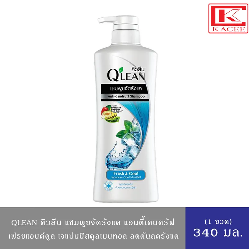 • ผลิตจากวัตถุดิบคุณภาพดี ที่ผ่านการทดสอบแล้ว     2.คิวลีน แชมพู ขจัดรังแค สูตรลดปัญหาผมขาดหลุดร่วง 340 มล.