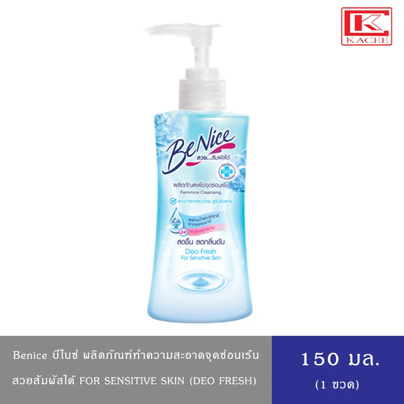 **BeNice Feminine Deo Fresh 150ml ผลิตภัณฑ์เพื่อจุดซ่อนเร้น สดชื่น เพื่อผิวบอบบาง สูตรใส ปกป้องยาวนาน คงความสดชื่นอย่างอ่อนโยน ให้กลิ่นหอมสดชื่น ด้วยสารสกัดจาก Passion Flower ผสานน้ำแร่บริสุทธ์จากสวิตเซอร์แลนด์ ไม่ทำให้เกิดอาการแพ้และระคายเคือง