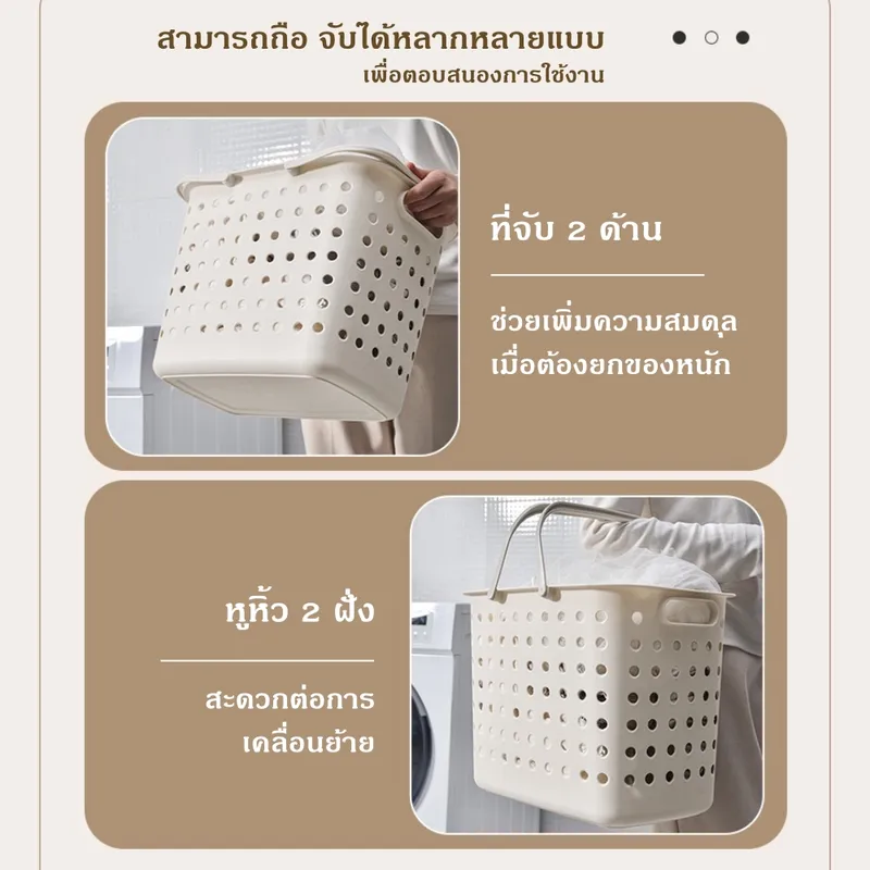 ●        ตะกร้าผ้าพร้อมที่จับและหูหิ้ว ถือสะดวก