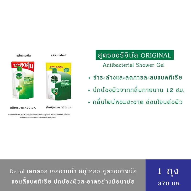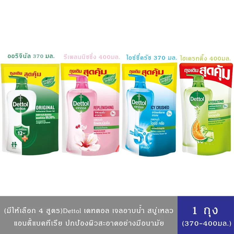 (มีให้เลือก 4 สูตร)Dettol เดทตอล เจลอาบน้ำ สบู่เหลว แอนตี้แบคทีเรีย(ถุงเติม) 370มล.-400มล. 1.เดทตอล สบู่เหลวอาบน้ำ แอนตี้แบคทีเรีย สูตร ออริจินอล