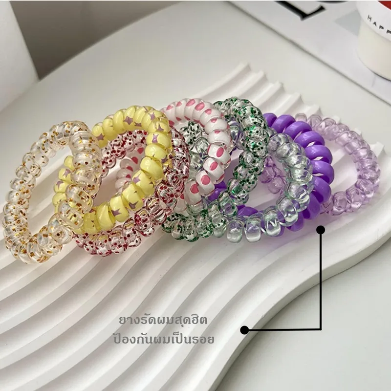 ● ยางรัดผม หนังยางแบบเกลียว 6 ชิ้น มี 5 สี สีพาสเทลไล่ระดับสี มีลวดลาย ไม่ยืดง่าย ไม่หด ไม่ย้วย ไม่กินเส้นผม หนังยางรัดผม สีสันสดใส สไตล์ญี่ปุ่น เครื่องประดับผมแฟชั่น