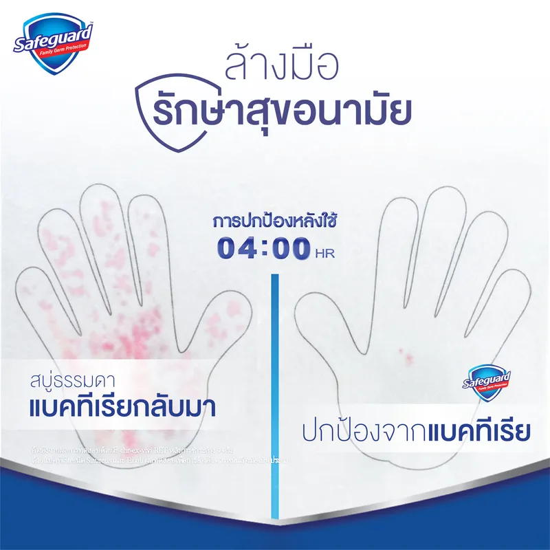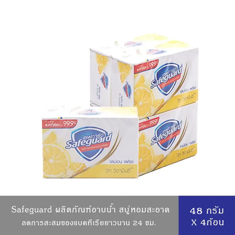 Safeguard เซฟการ์ด สบู่แอนตี้แบค สบู่ฆ่าเชื้อโรค สบู่ล้างมือ สบู่กลิ่นหอมสะอาด สูตรเลม่อนเฟรช สดชื่น 48 กรัม x4 ชิ้น เมื่อมาถึงยุค New Normal ที่เรื่องความสะอาดมีความสำคัญอันดับแรก ทุกคนต่างก็มุ่งดูแลสุขอนามัยส่วนบุคคลกันอย่างมาก ซึ่งการล้างมือเป็นประจำนั้นคือการเริ่มต้นง่าย ๆ แต่มีประสิทธิภาพที่สุดของการดูแลสุขอนามัยส่วนบุคคล เพราะมือคนเราคือส่วนแรกของร่างกายที่มักจะสัมผัสโดยตรงกับพื้นผิวต่าง ๆ บ่อยครั้งในแต่ละวัน ทำให้เกิดความเสี่ยงในการติดเชื้อโรคและเชื้อแบคทีเรียชนิดต่าง ๆ มากที่สุด ซึ่งในบางกรณีอาจทำให้ถึงแก่ชีวิตได้ สิ่งที่ทุกคนควรจะทำเพื่อรักษาสุขอนามัยส่วนบุคคลให้เป็นนิสัยก็คือ การล้างมือให้สะอาดอยู่เป็นประจำด้วยสบู่ที่มีประสิทธิภาพในการยับยั้งเชื้อโรคและแบคทีเรีย เพื่อลดการแพร่กระจายของเชื้อโรค และลดความเสี่ยงในการติดเชื้อโรคซึ่งจะนำมาซึ่งความเจ็บป่วยได้Safeguard เซฟการ์ด สบู่แอนตี้แบค Anti-bac สบู่กลิ่นหอมสดชื่น ผสมสารสกัดจากสมุนไพร 80 กรัมx4 ชิ้นSafeguard เซฟการ์ด สบู่แอนตี้แบค Anti-bac สบู่กลิ่นหอมสดชื่น ผสมสารสกัดจากสมุนไพร 80 กรัมx4 ชิ้นSafeguard เซฟการ์ด สบู่แอนตี้แบค Anti-bac สบู่กลิ่นหอมสดชื่น ผสมสารสกัดจากสมุนไพร 80 กรัมx4 ชิ้น
