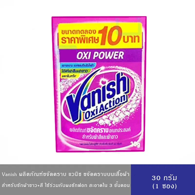 (มีให้เลือก 2 สูตร)Vanish แวนิช ผลิตภัณฑ์ขจัดคราบอเนกประสงค์ ชนิดผง 30 กรัม(ซักผ้าขาว,ซักผ้าขาวผ้าสี)