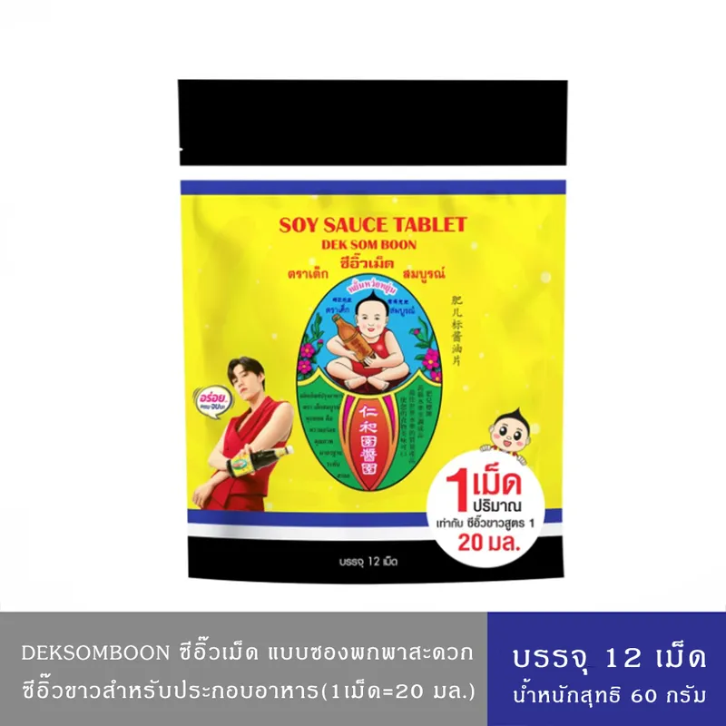 Soy Sauce Tablet ซีอิ๊วเม็ด ตราเด็กสมบูรณ์ 60 กรัม(12 เม็ด/ห่อ)ถูกพัฒนาขึ้นเพื่อตอบโจทย์กับพฤติกรรมของผู้บริโภคในปัจจุบัน