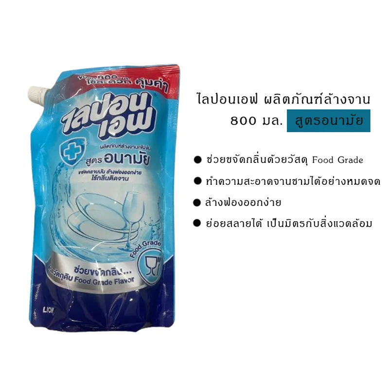 (มีให้เลือก 3 สูตร)Lipon F ไลปอนเอฟ น้ำยาล้างจาน สูตรเข้มข้นพิเศษ 800 มล.(1)น้ำยาล้างจาน ไลปอน เอฟ สูตรอนามัย ไลปอนเอฟ สูตรอนามัย ผ่านการทดสอบจนมั่นใจ ทุกหยดสะอาดใส่ มีค่าสารทำความสะอาดสูง ขจัดคราบมันไร้กลิ่นผลิตภัณฑ์ติดจาน ชนิดถุงเติมได้รับฉลากลดโลกร้อนมีส่วนช่วยลดการปล่อยก๊าซคาร์บอนไดออกไซด์ลงได้มากกว่าเดิม 5.6% (2)น้ำยาล้างจาน ไลปอน เอฟ สูตรมะกรูด ผลิตภัณฑ์ล้างจานเข้มข้นใช้สำหรับทำความสะอาด