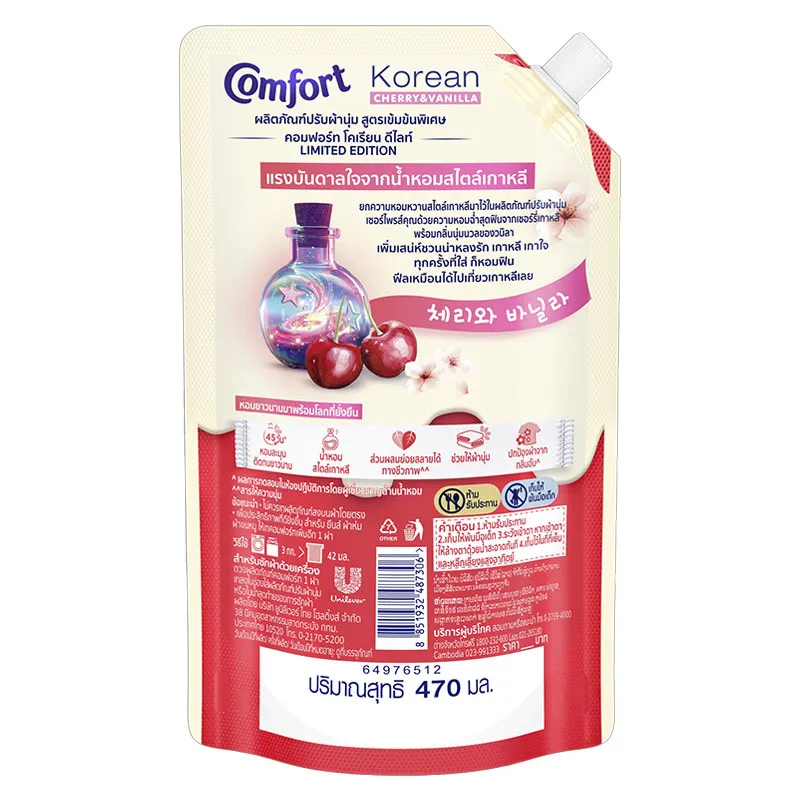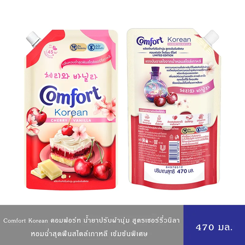 Comfort Korean คอมฟอร์ท น้ำยาปรับผ้านุ่ม กลิ่นเชอร์รี่วนิลา หอมฉ่ำสุดฟินสไตล์เกาหลี ขนาด 470 มล.