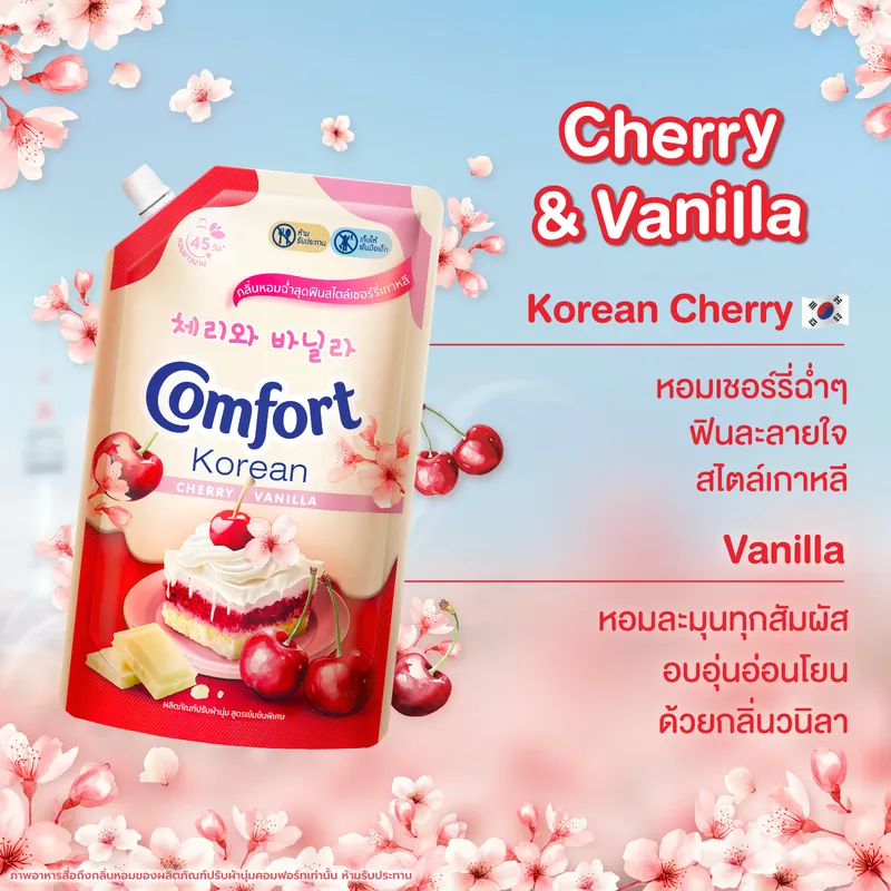 คอมฟอร์ท โคเรียน ดีไลท์ ผลิตภัณฑ์ปรับผ้านุ่ม เชอร์รี & วานิลลา ที่ได้แรงบันดาลใจจากน้ำหอมสไตล์เกาหลี