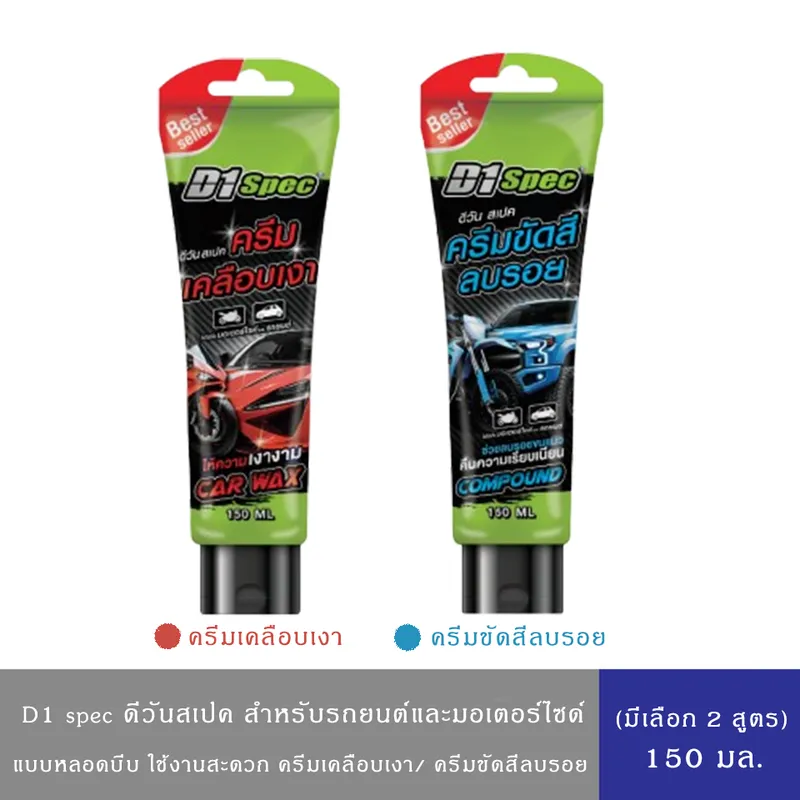 (มีให้เลือก 2 สูตร)D1 SPEC ดีวัน สเปค ครีมขัดสีลบรอย ครีมเคลือบเงา ขนาด 150 มล.