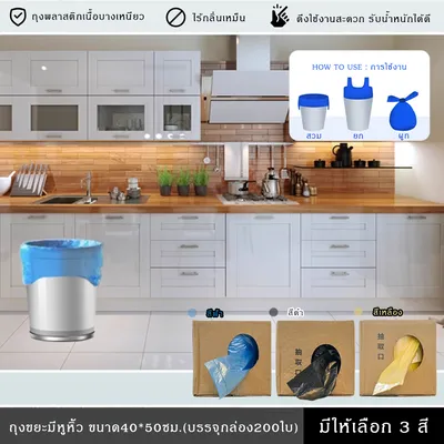 (มีให้เลือก3สี)ถุงใส่ขยะ มีหูหิ้ว รับน้ำหนักได้ดี ไม่รั่วซึมง่าย เนื้อเหนียว กล่อง200ชิ้น ขนาด40*50ซม.