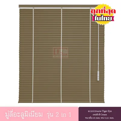 KACEE มู่ลี่ มู่ลี่อะลูมิเนียม มู่ลี่อลูมิเนียม ม่านหน้าต่าง รุ่น 2 in 1 เทปผ้า ใบขนาด 25 มม. สีน้ำตาลอ่อน KC25/CP4436 Tiger Eye หนา 0.21 มม. เทปผ้าสีครีม
