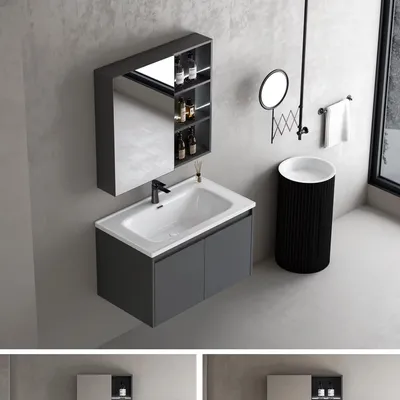 เคาเตอร์อ่างล้างหน้า อ่างล้างมือ ตู้เก็บของในห้องน้ำ ชุดอ่างล้างหน้า กระจกติดผนังรุ่น W60