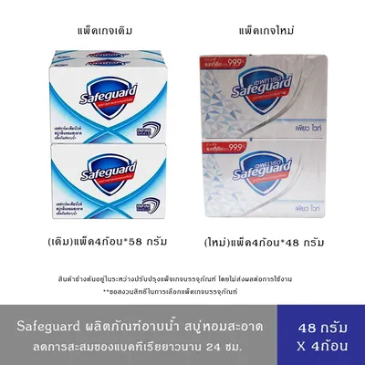 Safeguard เซฟการ์ด เพียวไวท์ สบู่แอนตี้แบค สบู่กำจัดเชื้อโรค สบู่กลิ่นหอมสะอาด 80 กรัม x4 ชิ้น