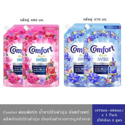 (สินค้าอยู่ระหว่างปรับแพ็คเกจบรรจุภัณฑ์)Comfort คอมฟอร์ท น้ำยาปรับผ้านุ่ม อัลตร้า สูตรฟ้า,ชมพู แพ็คคู่480มล.+480มล.