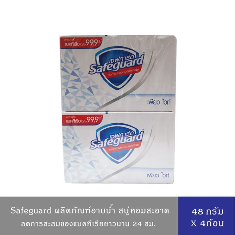 Safeguard เซฟการ์ด เพียวไวท์ สบู่แอนตี้แบค สบู่กำจัดเชื้อโรค สบู่กลิ่นหอมสะอาด 48 กรัม x4 ชิ้น เมื่อมาถึงยุค New Normal ที่เรื่องความสะอาดมีความสำคัญอันดับแรก ทุกคนต่างก็มุ่งดูแลสุขอนามัยส่วนบุคคลกันอย่างมาก ซึ่งการล้างมือเป็นประจำนั้นคือการเริ่มต้นง่าย ๆ แต่มีประสิทธิภาพที่สุดของการดูแลสุขอนามัยส่วนบุคคล เพราะมือคนเราคือส่วนแรกของร่างกายที่มักจะสัมผัสโดยตรงกับพื้นผิวต่าง ๆ บ่อยครั้งในแต่ละวัน ทำให้เกิดความเสี่ยงในการติดเชื้อโรคและเชื้อแบคทีเรียชนิดต่าง ๆ มากที่สุด ซึ่งในบางกรณีอาจทำให้ถึงแก่ชีวิตได้ สิ่งที่ทุกคนควรจะทำเพื่อรักษาสุขอนามัยส่วนบุคคลให้เป็นนิสัยก็คือ การล้างมือให้สะอาดอยู่เป็นประจำด้วยสบู่ที่มีประสิทธิภาพในการยับยั้งเชื้อโรคและแบคทีเรีย เพื่อลดการแพร่กระจายของเชื้อโรค และลดความเสี่ยงในการติดเชื้อโรคซึ่งจะนำมาซึ่งความเจ็บป่วยได้