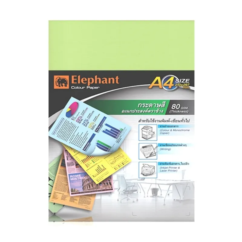“กระดาษการ์ดสีอเนกประสงค์ตราช้าง A4 80 แกรม - กระดาษสีตราช้าง รุ่น colour pop- สำหรับงานพิมพ์ งานถ่ายเอกสาร หรืองานศิลปะทั่วไป- เนื้อกระดาษเรียบเนียน สามารถทำปกรายการ ใบปลิว เมนู การ์ดอวยพร นามบัตร และงาน Craft & Hobby- มี 2 สี ให้เลือก สีฟ้า/สีเขียว- ความหนา : 80 แกรม- ขนาด A4 (210 x 297 มม.)