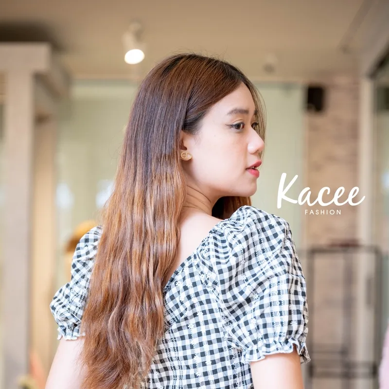 • :เสื้อลายสก็อตแขนตุ๊กตา ลายดอกไม้ ทรงเสื้อครอป มีกระดุมติดหน้า