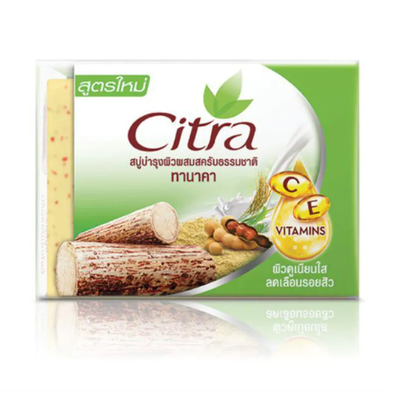 สบู่ซิตร้า ทานาคา ไวท์เทนนิ่ง ผสมสครับจากธรรมชาติ ช่วยทำความสะอาดผิวหน้าและผิวกาย เพื่อผิวแลดูกระจ่างใสด้วยสครับเซลลูโลสจากพืชธรรมชาติ และAHA ที่ช่วยผลัดเซลล์ผิวที่เสื่อมสภาพ*อย่างอ่อนโยนใช้ได้ทุกวันด้วยส่วนผสมจากธรรมชาติ ทานาคา มะขาม และน้ำนมข้าว ผสานคุณค่าจากวิตามิน C&E ที่มีคุณสมบัติช่วยบำรุงผิวให้เรียบเนียน ลดเลือนรอยดำจากสิว พร้อมฟองครีมนุ่มละเอียด เพื่อผิวแลดูกระจ่างใสอย่างเห็นได้ชัด