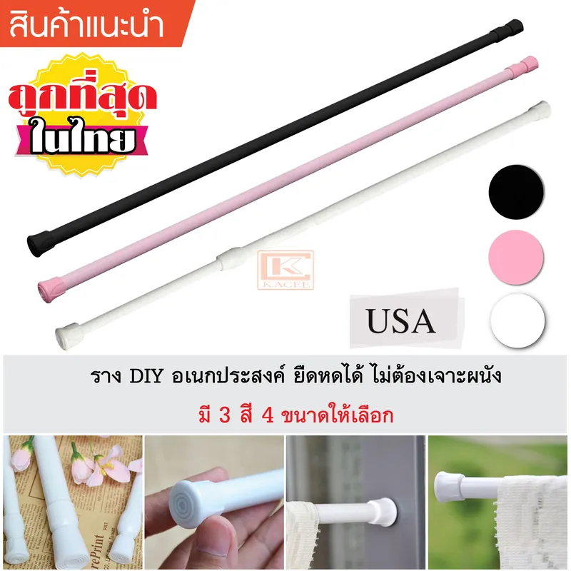 KACEE ราง DIY รางอเนกประสงค์ ราวแขวนผ้าม่าน ยืดหดได้ ไม่ต้องเจาะผนัง