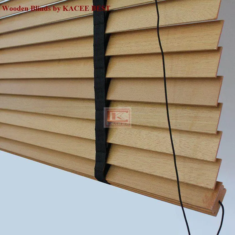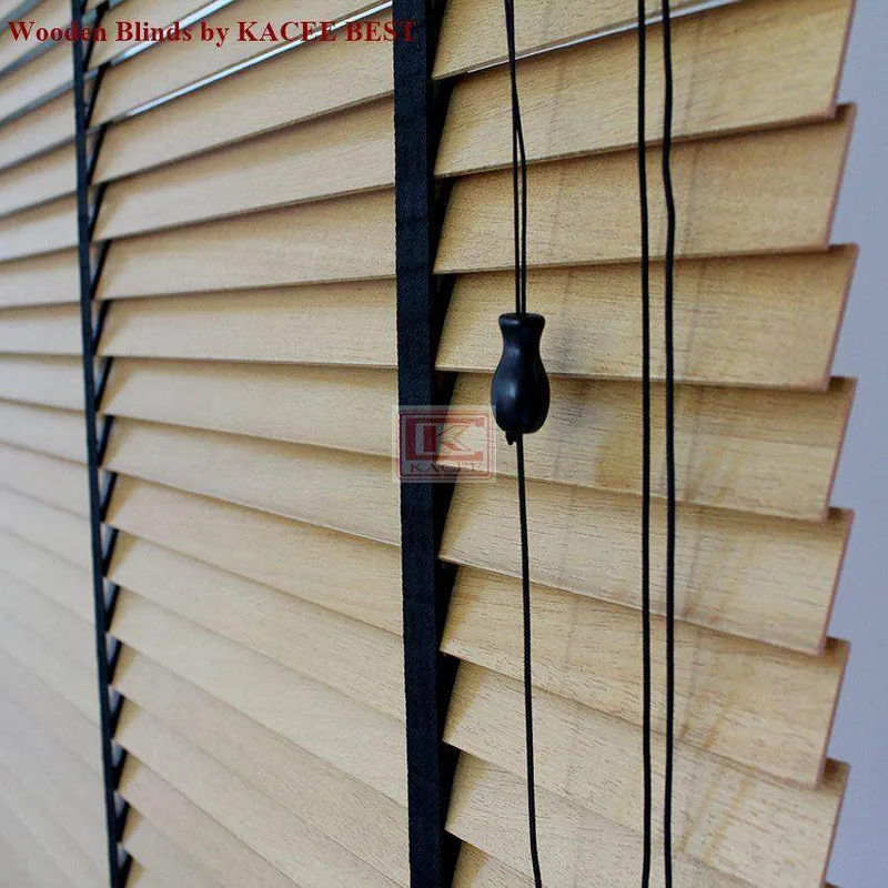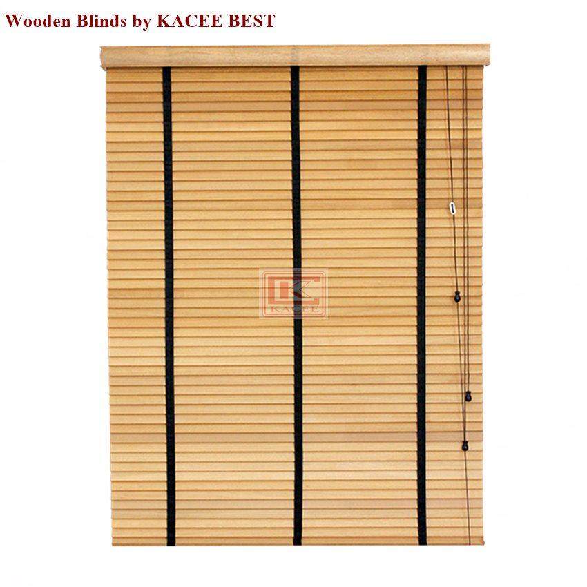 KACEE มู่ลี่ มู่ลี่ไม้ มู่ลี่ไม้บาสวูด สีดำ (Black) รุ่นเชือกปรับ ขนาดใบ 35 มม.