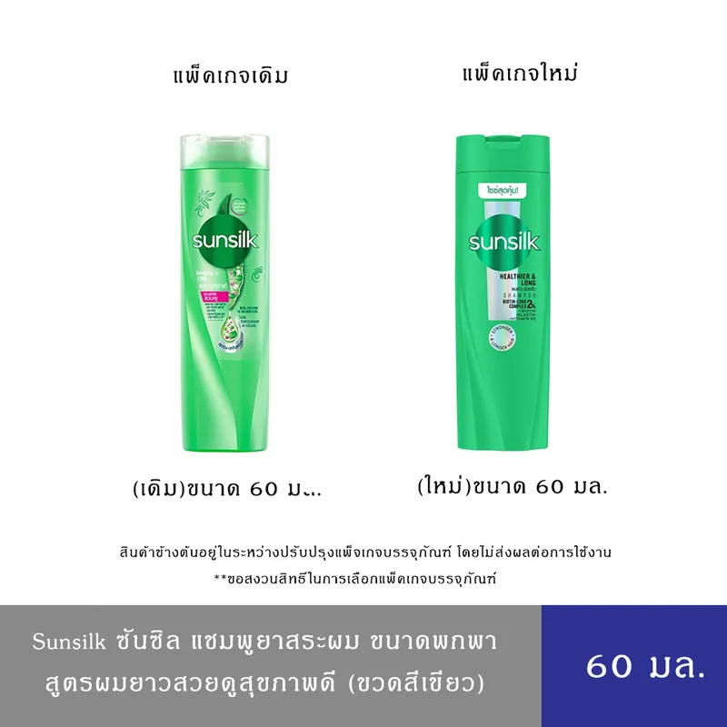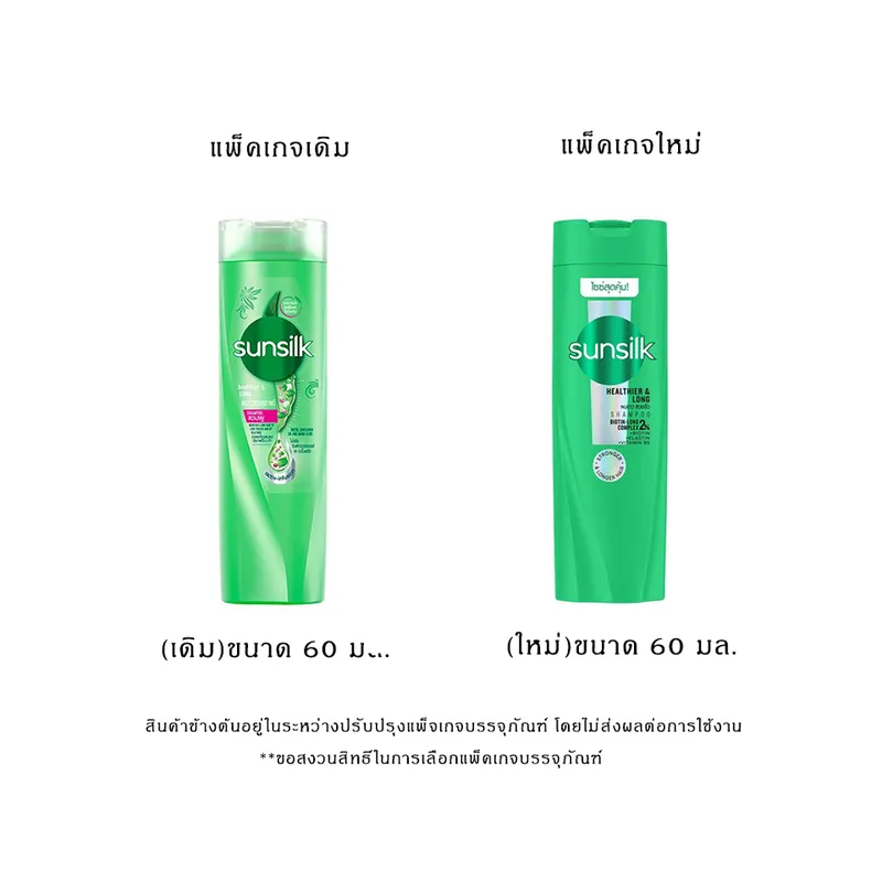 Sunsilk ซันซิล แชมพู ยาสระผม เฮลธีเออร์ แอนด์ ลอง แอคทีฟ อินฟิวส์ชั่น สีเขียว 60 มล.