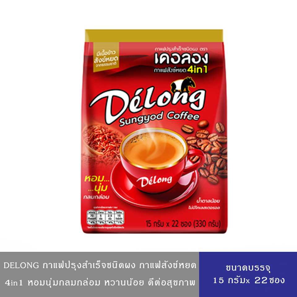รายละเอียดสินค้า เดอลอง กาแฟข้าวสังข์หยด ถุง 22 ซอง
