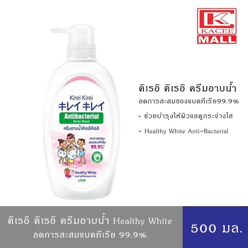 “Kirei Kirei ครีมอาบน้ำ คิเรอิ คิเรอิ สูตร Healthy White 500 มล. Antibacterial Body Wash 500 ml. ลดการสะสมของแบคทีเรีย 99.9%* ชำระล้างสิ่งสกปรก ด้วยครีมอาบน้ำสูตรที่ดีที่สุดของคิเรอิคิเรอิ พร้อมกลิ่นหอมละมุน ปกป้องผิวของทุกคนในครอบครัวให้สะอาด มีอนามัย