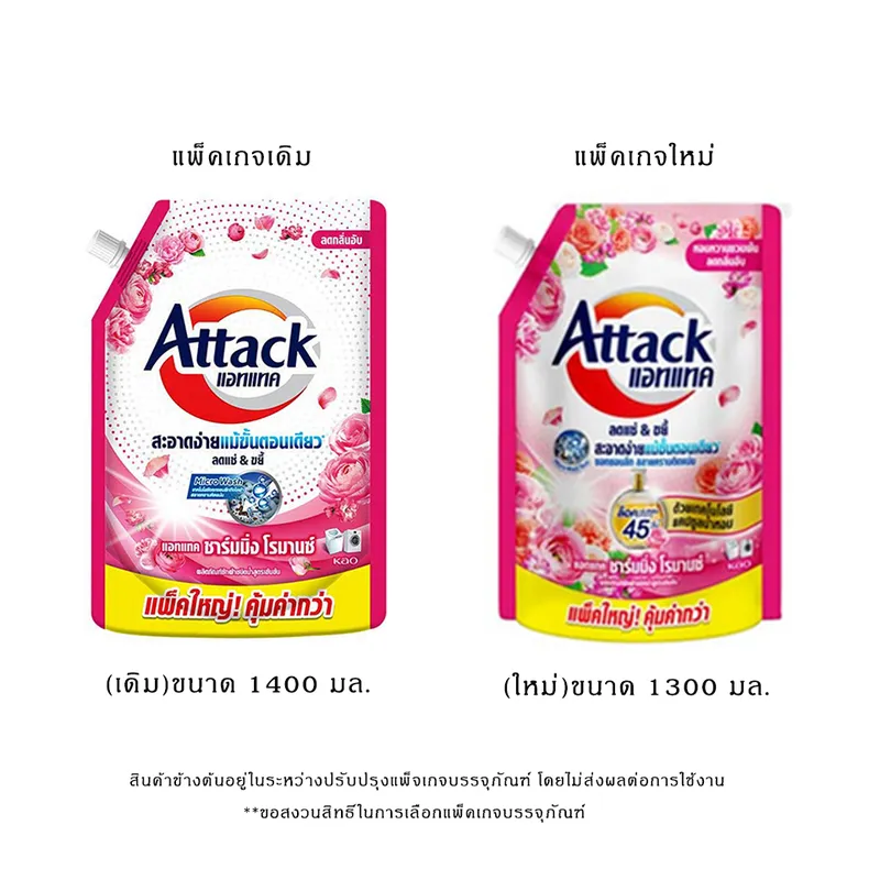 แอทแทค ผลิตภัณฑ์น้ำยาซักผ้า สูตรเข้มข้น (คลีนแอดวานซ์,โรมานซ์ชมพู, เลดี้อิลิแกนท์,รีแล็กซิ่ง) 1,300-1,400 มล.