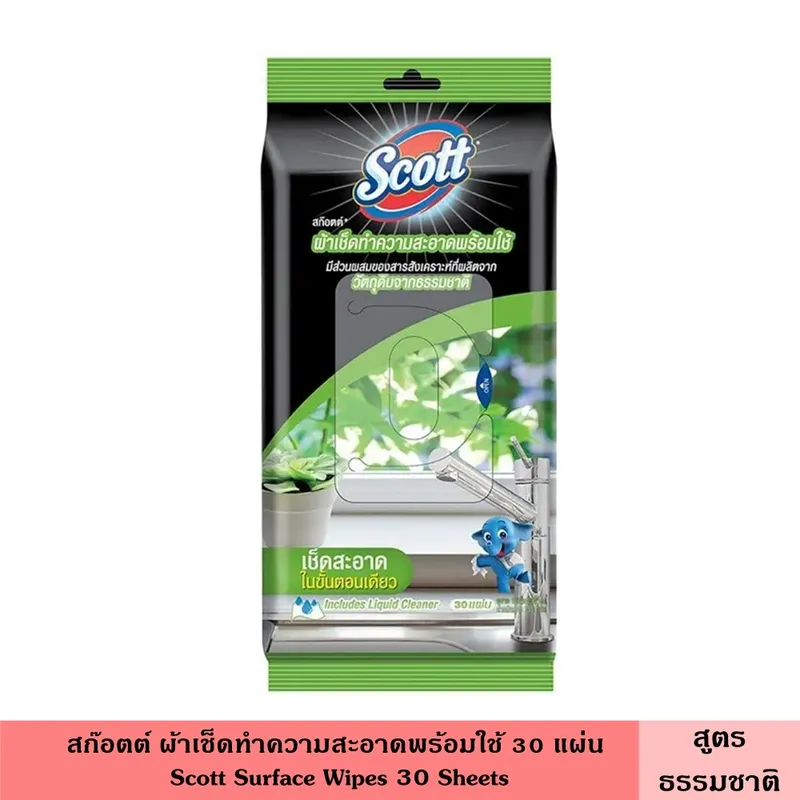 1) สก๊อตต์ ผ้าเช็คทำความสะอาดพร้อมใช้ สูตรธรรมชาติ 30แผ่น