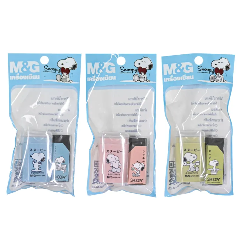 คะแนนและรีวิวของ M&G กบเหลาดินสอ+ยางลบ 4B Snoopy รหัส SPS912B3+SXP963GL คละสี กบมีฝาปิด ใบมีดทนทาน ไม่เป็นสนิม ยางลบเนื้อพิเศษ ที่เหลาดินสอ ลายสนู๊ปปี้ ของแท้ เอ็มแอนด์จี