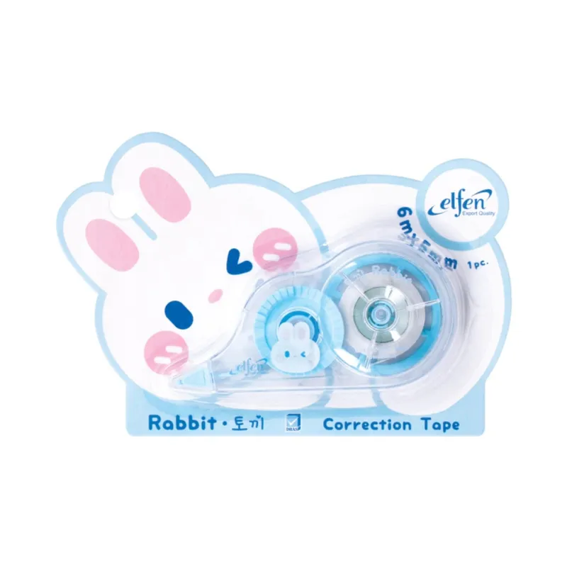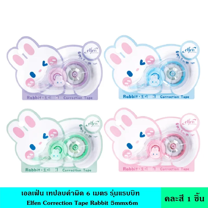 Elfen เอลเฟ่น เทปลบคำผิด 6 เมตร รุ่นแรบบิท คละสี 1 ชิ้น เนื้อเทปคุณภาพดี ยึดติดกับกระดาษได้ดี ปกปิดเรียบเนียน น้ำยาลบคำผิด ลิขวิค