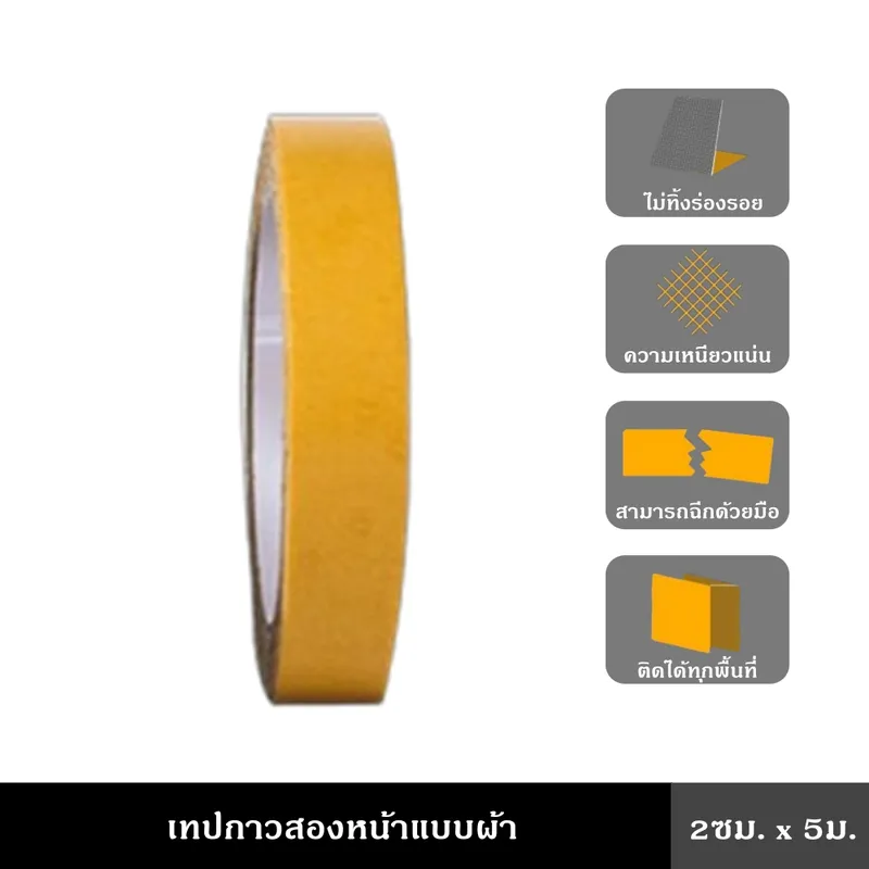 ● เทปกาวสองหน้าแบบผ้า แรงยึดเกาะที่แข็งแกร่ง ไม่เหลือกาวตกค้าง ต้านทานแรงดึงต่อเนื่อง