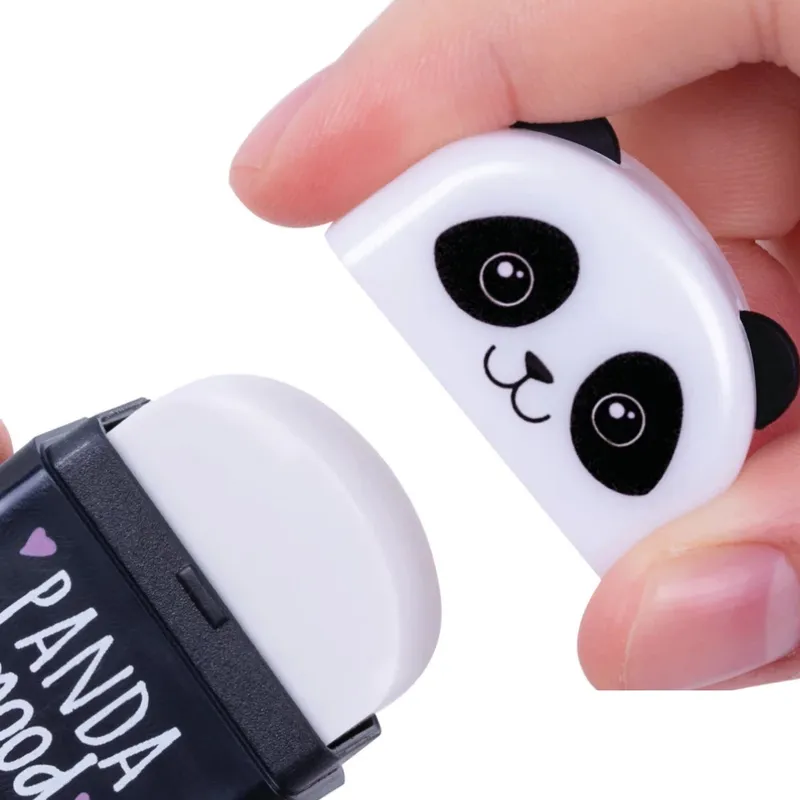 - หมีแพนด้ามาพร้อมฝาเปิด-ปิด ฝาบนเป็นยางลบ และฝาล่างเป็นกบเหลาที่เก็บเศษไส้ดินสอขณะเหลาได้