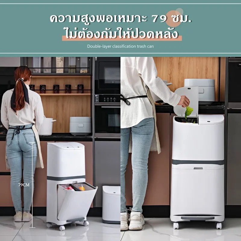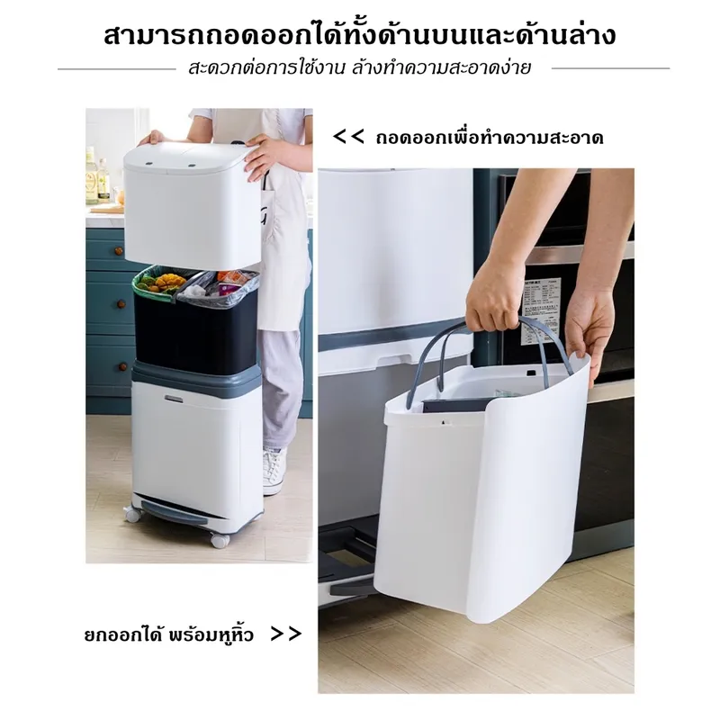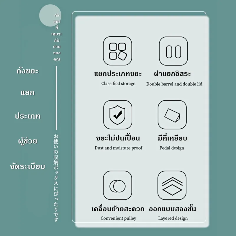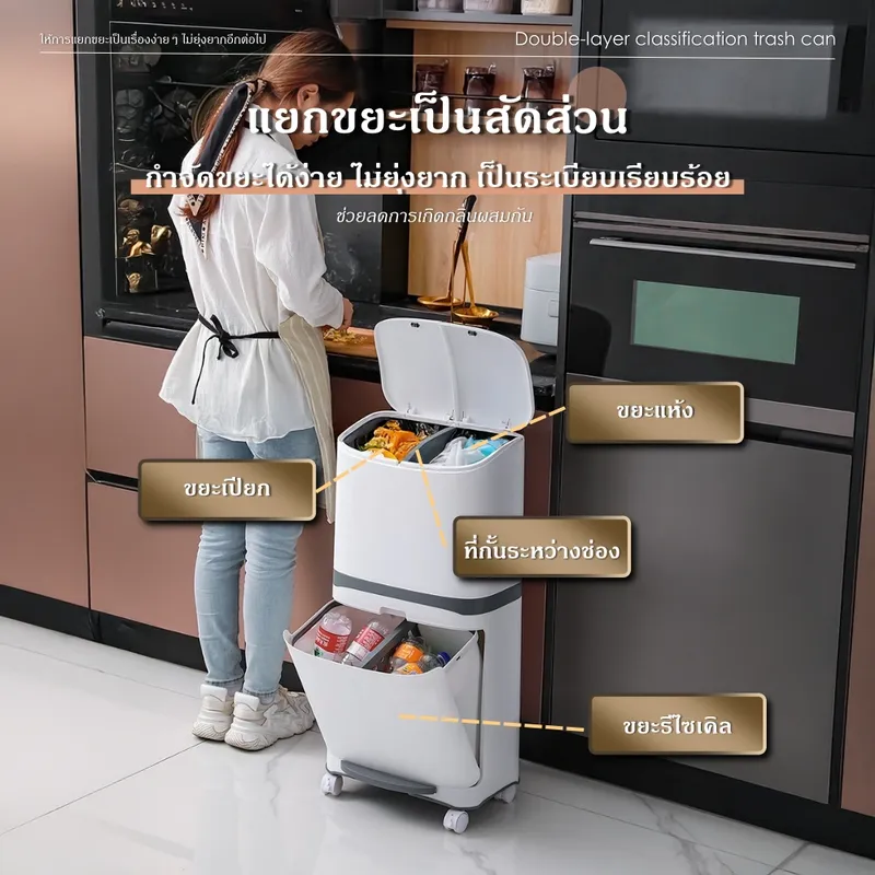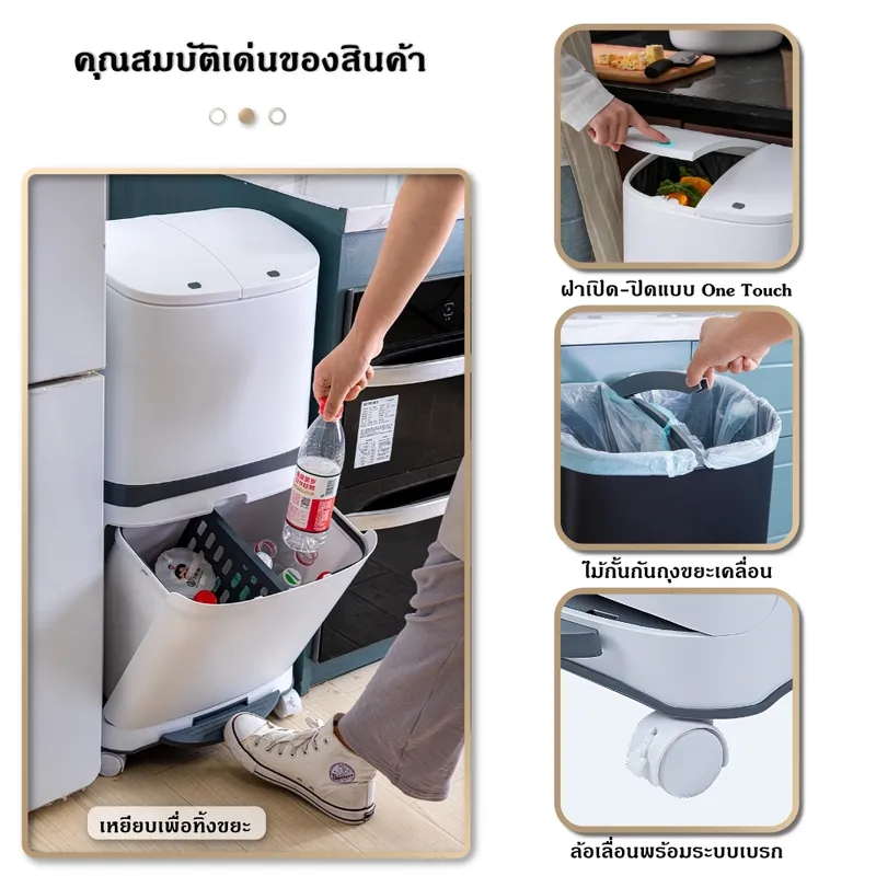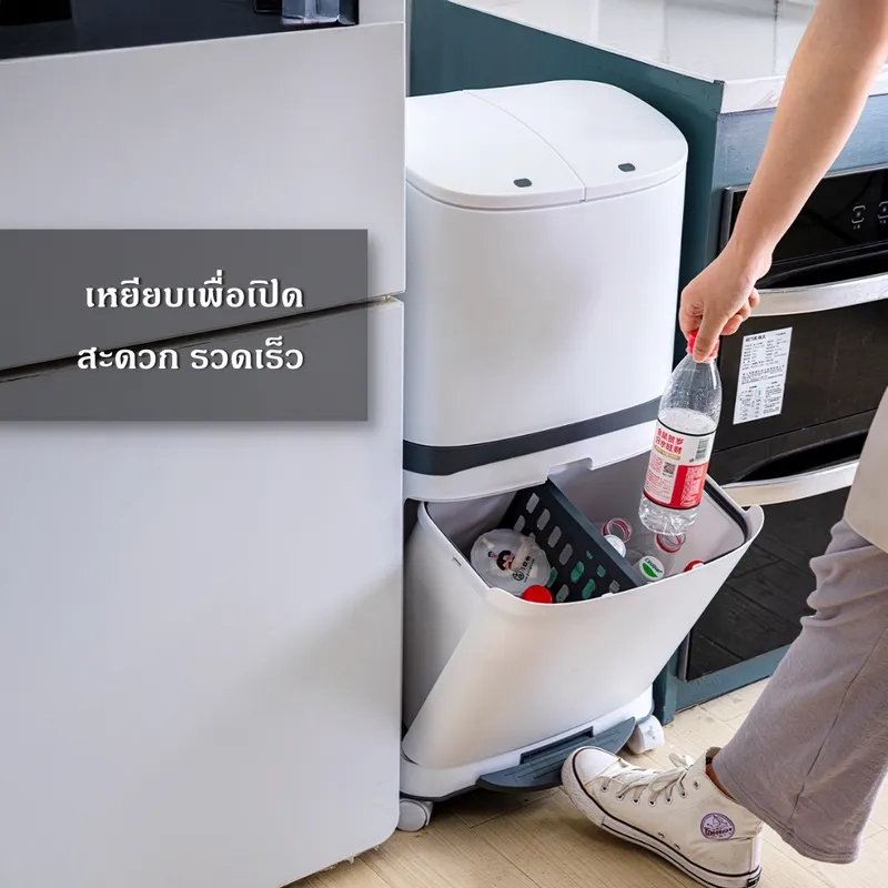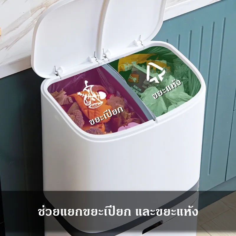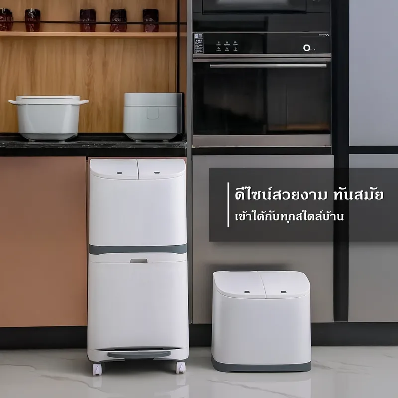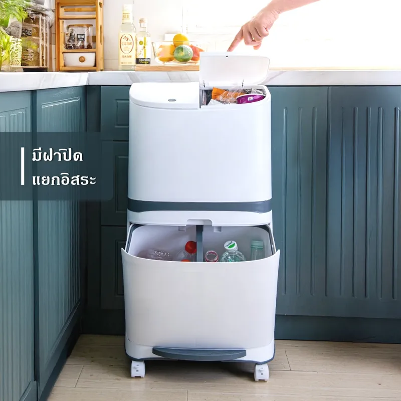 • แยกประเภทขยะได้ ออกแบบให้มี 2 ชั้น จัดการขยะรีไซเคิลและขยะทั่วไปอย่างเป็นระเบียบ