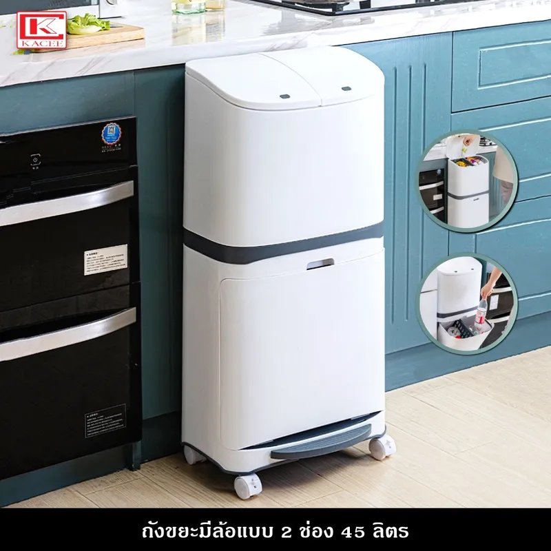 ถังขยะ 45 ลิตร ฝาแยก 2 ช่อง แยกขยะ สไตล์ญี่ปุ่น มีล้อหมุนได้360พร้อมเบรก ใช้งานสะดวก บรรจุได้เยอะ