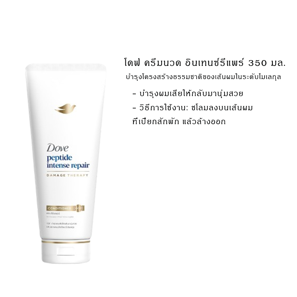 ที่ได้รับการยอมรับว่าช่วยปกป้องผมเสีย โดฟ เพปไทด์ อินเทนซ์ รีแพร์ ช่วยฟื้นบำรุงโครงสร้างธรรมชาติของเส้นผมในระดับโมเลกุล