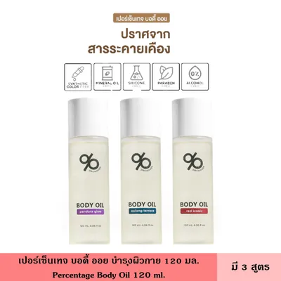 Precentage Body Oil เปอร์เซ็นเทจ บอดี้ ออย 120 มล. มี 3 สูตร กลิ่นหอม บำรุงผิวกาย เนียนนุ่ม ชุ่มชื้น ผสานน้ำมันธรรมชาติ 6 ชนิด ออยทาตัว