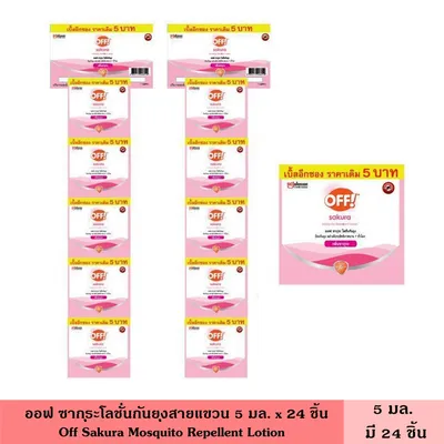 Off ออฟ ซากุระโลชั่นกันยุง สายแขวน 5 มล. X 24 ชิ้น ครีมกันยุง ป้องกันยุง ได้นานถึง 7 ชั่วโมง กลิ่นซากุระ Mosquito Repellent Lotion