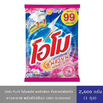 OMO Plus โอโมพลัส ซันชายน์ สูตรฟลอรัล พลังซัก3อิน1 ซักสะอาดเต็มพลัง น้ำหอมติดทนนาน ขนาด 2,600กรัม
