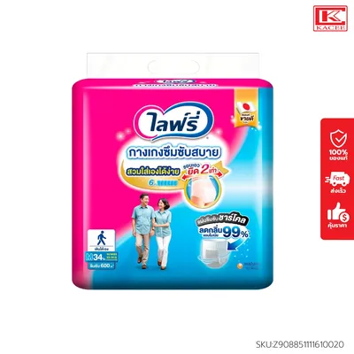 Lifree (แพ็ค2ห่อ) ไลฟ์รี่ กางเกงซึมซับสบาย ขนาด M 11 ชิ้น บางกระชับ ระบายอากาศได้ดี กางเกงผู้ใหญ่ กางเกงสวมสบาย กางเกงซึมซับ ผ้าอ้อมผู้ใหญ่